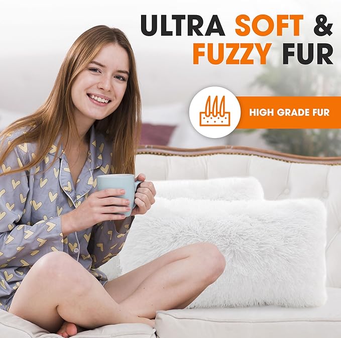 • Superior Fuzzy Texture: Enjoy the ultra-soft feel of long, fluffy faux fur on both sides of the pillow. Perfect for snuggling, these throw pillows offer unmatched softness and warmth.