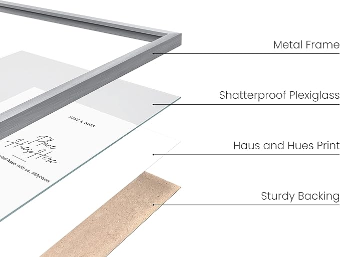 - STUNNING MODERN SILVER FRAMES: Our 11x14 frame set is a sleek and stylish choice for displaying your favorite artwork or photographs. The 11 x 14 picture frame is made of durable aluminum, ensuring it will stand the test of time. The minimal design of the 11x14 frames will add a touch of sophistication and refinement to any space. Whether you're looking to add a modern feel to your bedroom, office, or living room, this understated 11x14 poster frame will surely fit the bill.