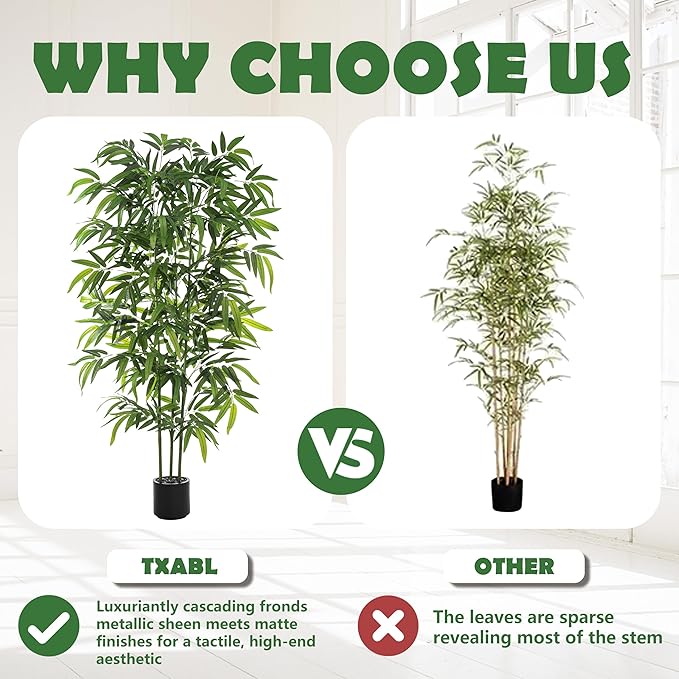 - Safe & Durable Materials: This highly realistic faux bamboo plant indoor is made of durable and premium polyester material, real touch, waterproof, eco-friendly and harmless. It's easy to clean, just use a duster. No special maintenance required. The tree decor leaves are thickened, more sturdy and durable. Carefully mimic the real texture of plants, under the light, it can better present the light and shade effect of plants