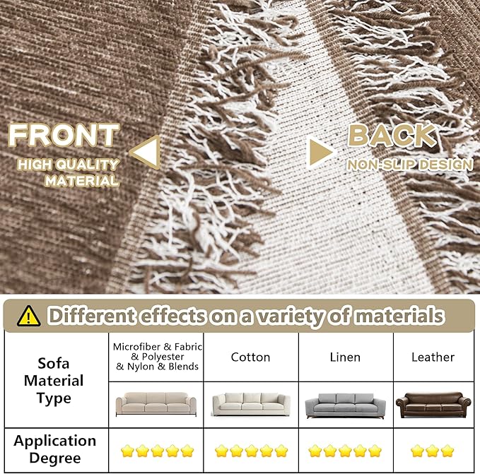 - High Quality: Couch throw cover furniture protector is made of thick chenille fabric, super soft and skin-friendly to the touch, tear-resistant, good drape, breathable, comfortable and durable. Suitable for all seasons and will not pilling or fading after washing.