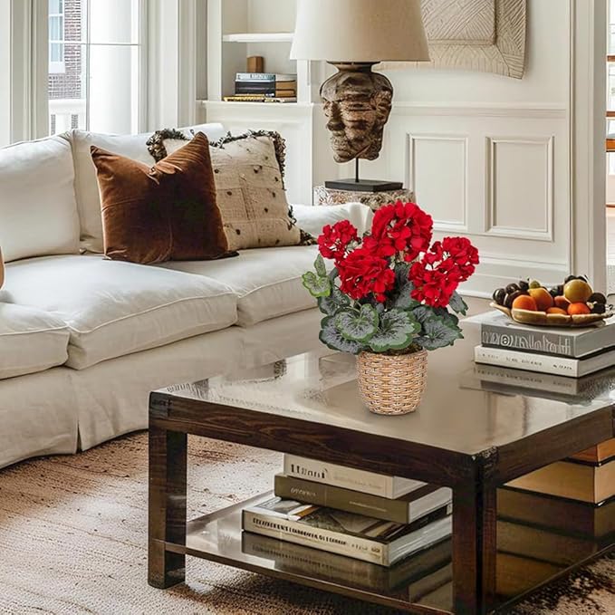 • REALISTIC GERANIUMS BLOOMS – This lush arrangement of geraniums artificial flowers realistic brings vivid red blossoms and lifelike green leaves that stay fresh all year. Made from premium silk for true-to-life texture and natural elegance.