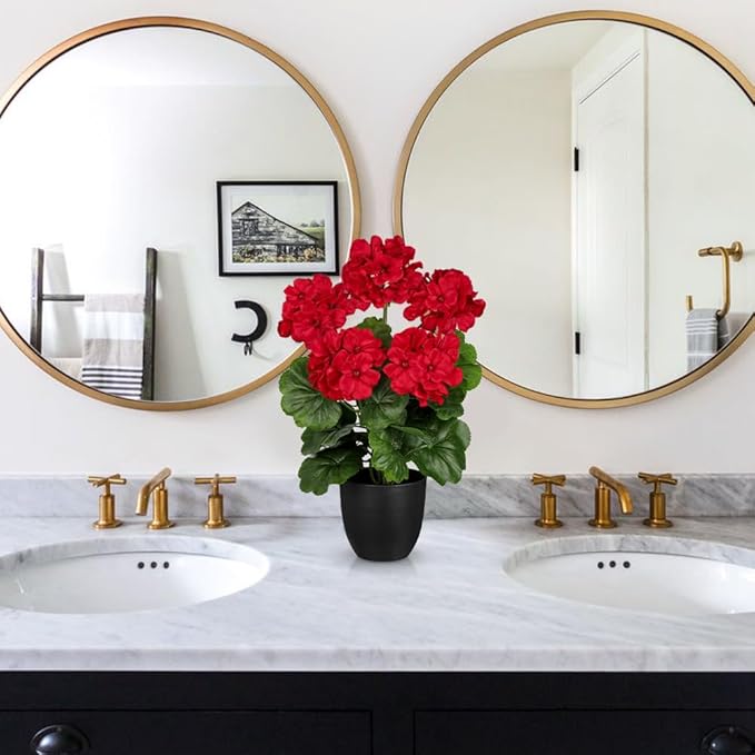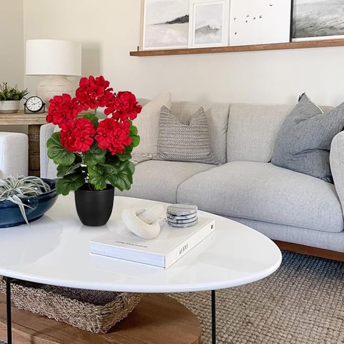 - REALISTIC YEAR-ROUND BLOOMS – Enjoy vibrant geraniums that never fade or wilt. These geraniums artificial flowers realistic feature lifelike petals, lush green leaves, and a full, layered design — bringing the timeless charm of real blooms to your home all year long.