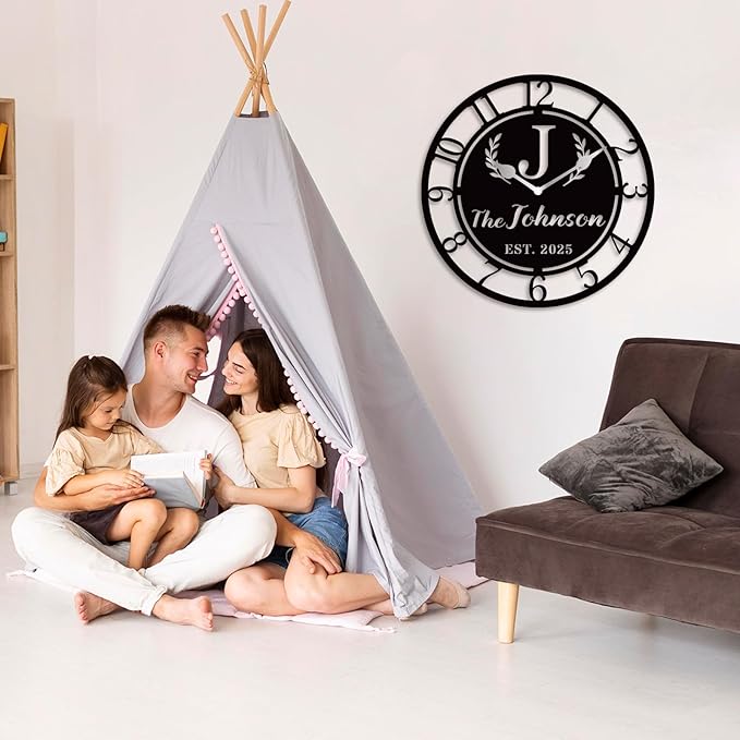 • Customizable Monograms - Who doesn’t love a little personal touch around the house? Our customizable Metal Clock Signs make every space feel homier. Choose from 2 colors (black gold or silver) and 5 sizes (12", 15", 20", 24", 28")!