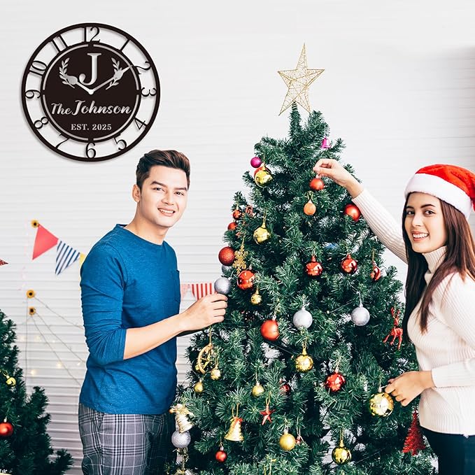 HZYCYYFC Personalized Metal Clock Sign, Custom Metal Clock,Personalized Gift, Black Gold and Silver Color Options, Housewarming Gift, Living Room Decor
